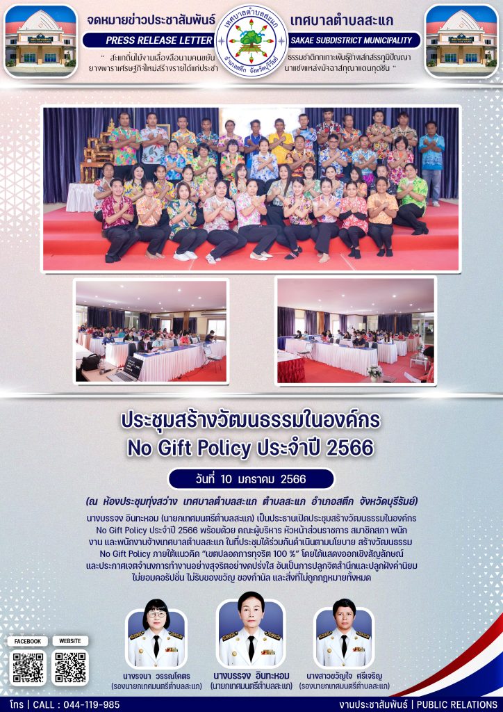 สร้างวัฒนธรรม No Gift Policy ประจำปี พ.ศ.2566