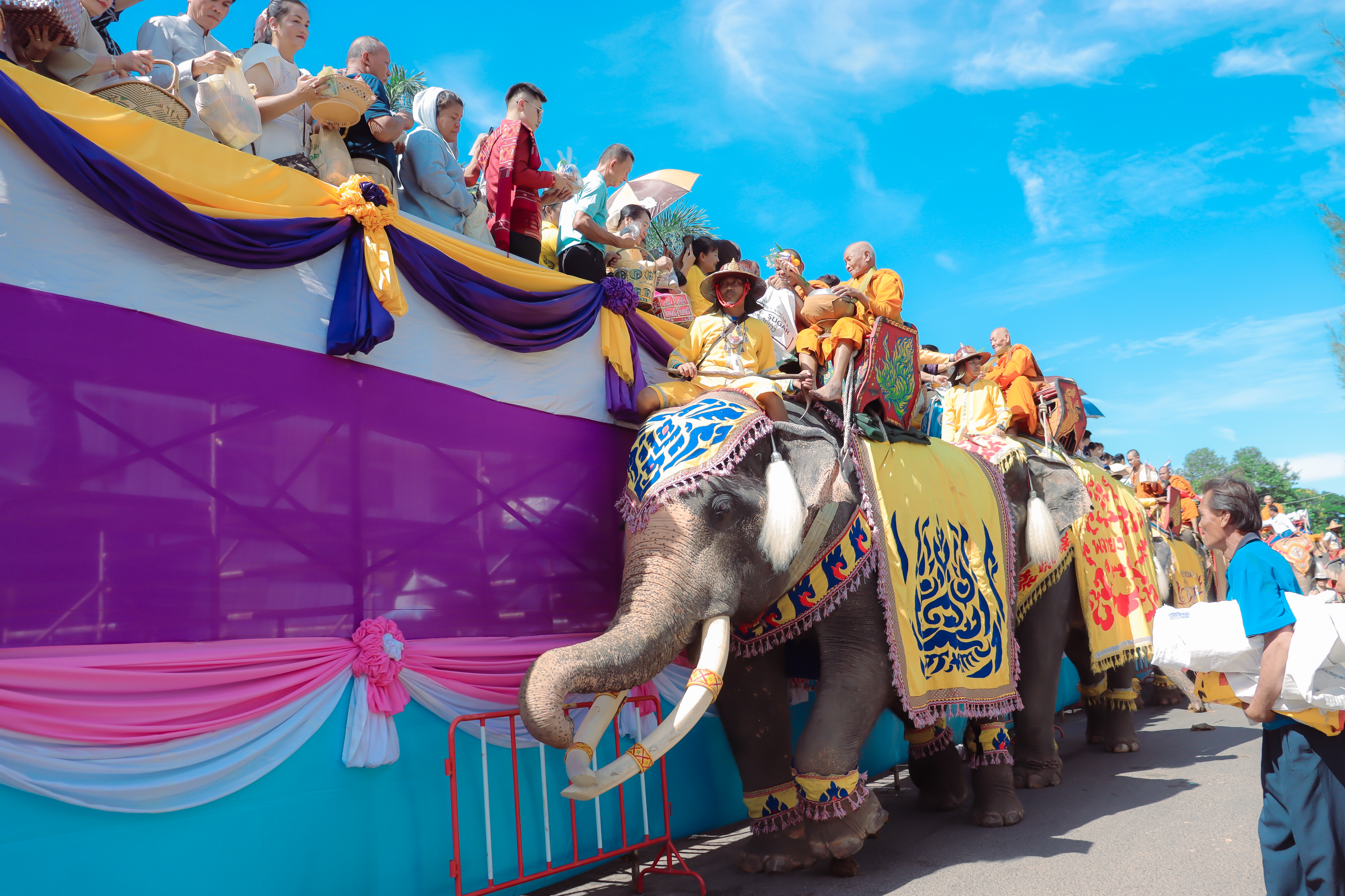 ผู้อัญเชิญพานพุ่มทอง นายบพิตร กาแก้ว (ประธานสภาเทศบาลตำบลสะแก) และผู้อัญเชิญพานพุ่มเงิน นางคำแดง บุญมาแคน (รองประธานสภาเทศบาลตำบลสะแก)