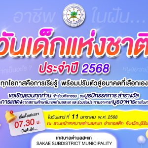 ข่าวประชาสัมพันธ์ ขอเชิญชวนทุกท่านร่วมงาน วันเด็กแห่งชาติ ประจำปี 2568 เทศบาลตำบลสะแก / มีนาคม 12, 2025 / 0 ความเห็น อ่านเพิ่มเติม